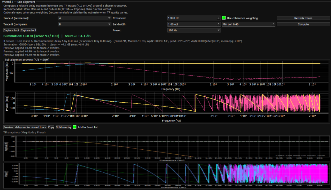 Los Wizards aceleran y simplifican tareas de ajuste de sistemas tales como chequeo de polaridad, ajuste de sub graves, ajuste de front fills y outfills, promedios en distintos puntos de sala y más opciones de calibración y ajuste.